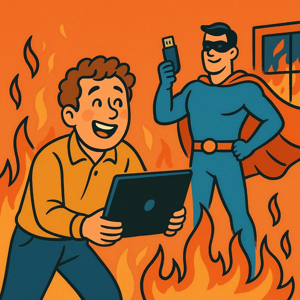 Почему так сложно? Потому что одна копия — это не бэкап, а иллюзия безопасности. Пожар, наводнение, вирус-шифровальщик или ребёнок с вареньем уничтожат и основной компьютер, и ваш «бэкап», если они лежат рядом.